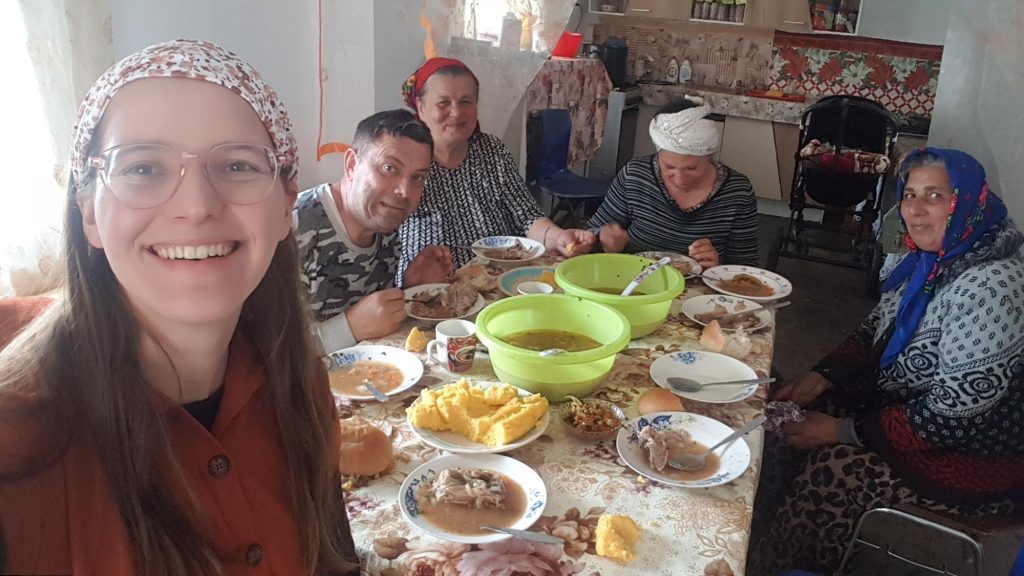 A plate is washed down in front of me and filled with a thin, oil-rich soup and a large piece of meat finds its place among the few vegetables. Meanwhile, I ask the question I can now dream of asking: “Koem te kjama? (What is your name?)”. This is what I ask everyone and I am sorry to say that by the end of the round I can only remember one name. These people happily introduced themselves with one name, about 20 minutes before I got out of the car and asked the surrounding Roma children their names. They all traditionally answer with three names! Of which I repeated only one at random and also promptly forgot it. “Samaria,” did stick with me, one of the names borne by a girl from the club. It seems to be a common name among Roma girls. It’s a Biblical name, and the fact that it’s a city in the Bible doesn’t bother anyone, it’s a pretty name after all…?
